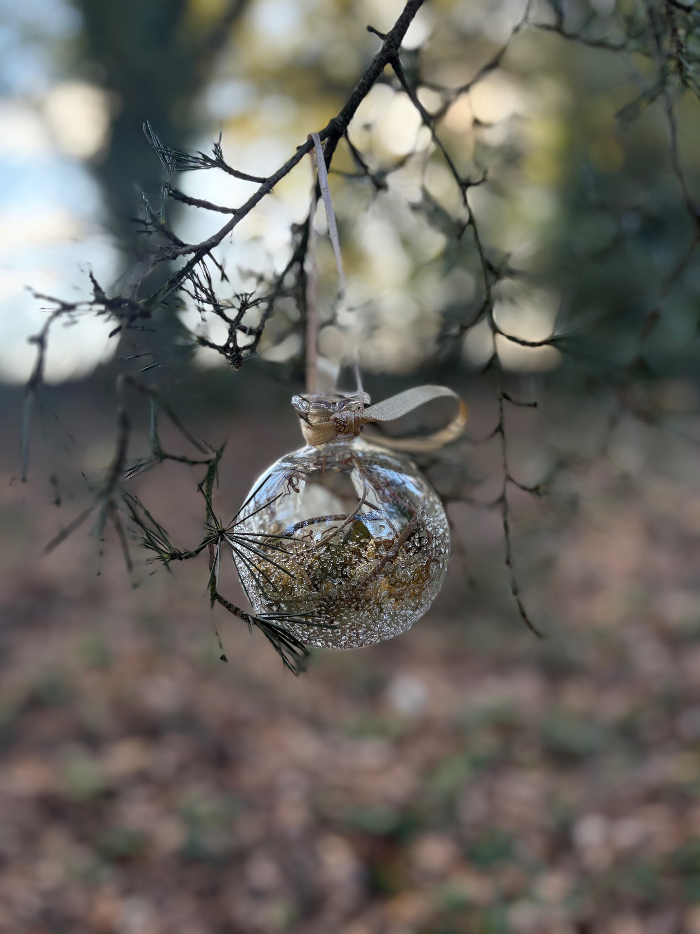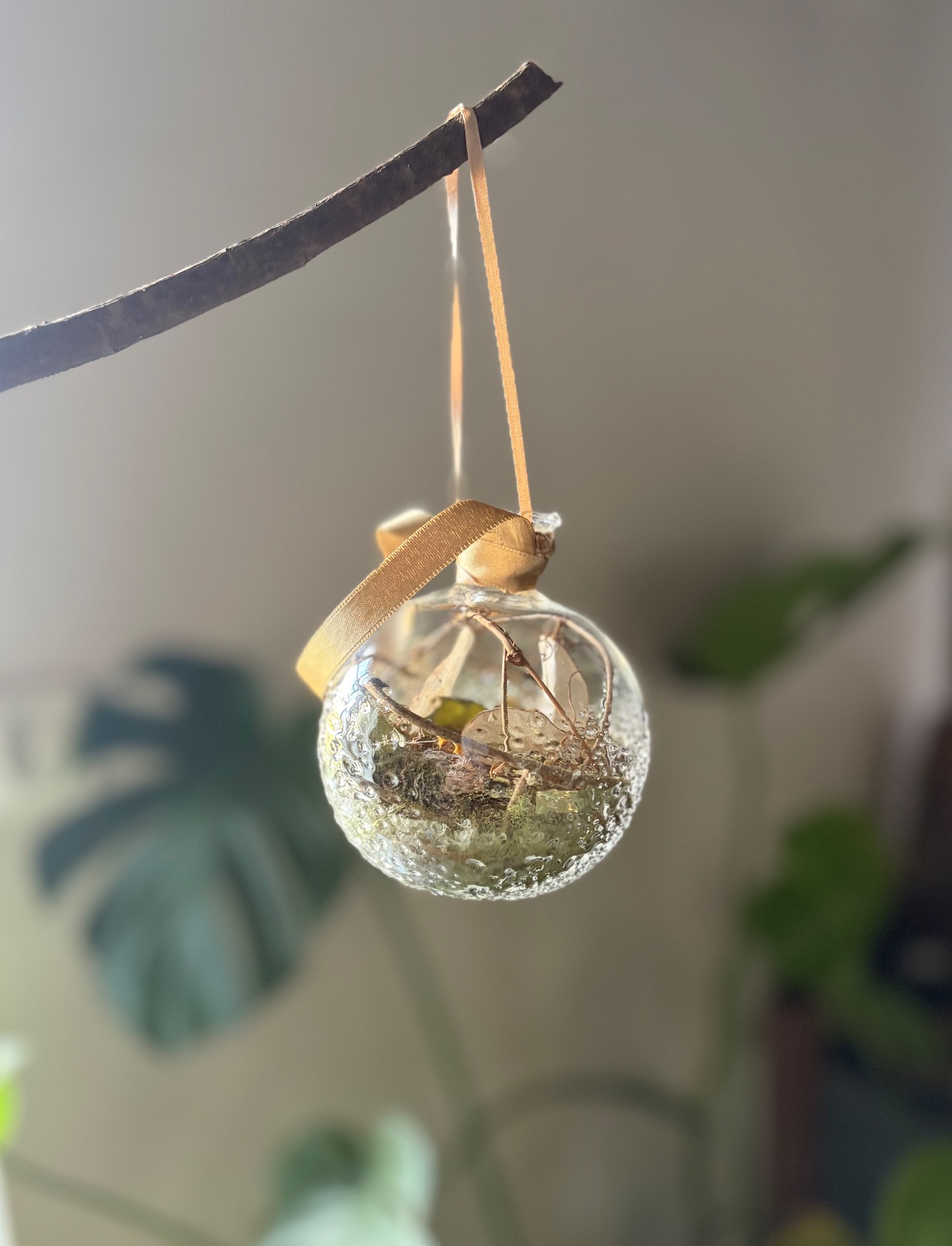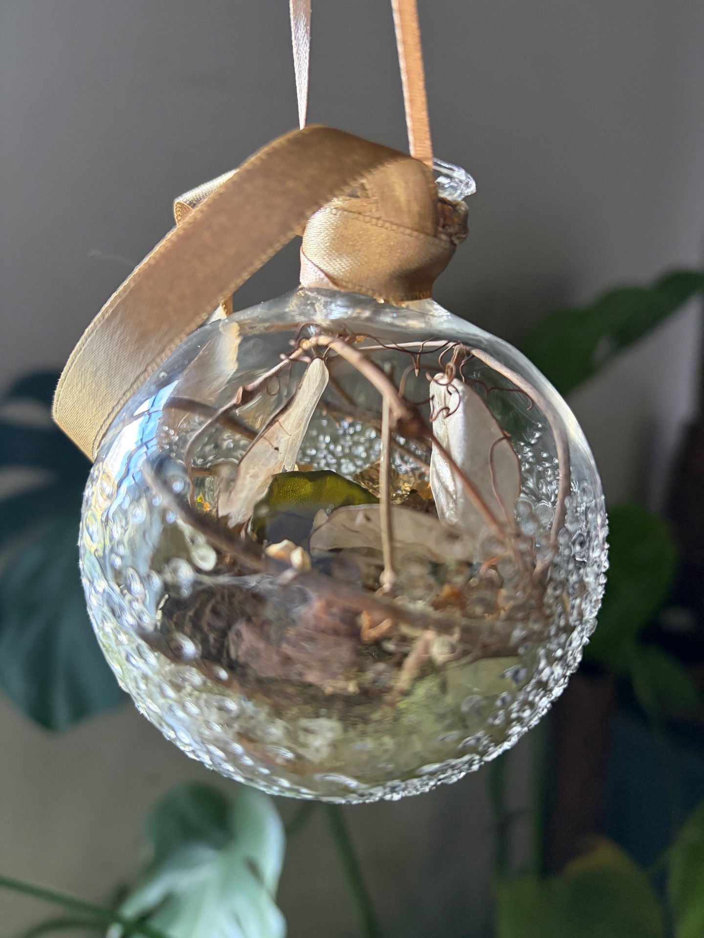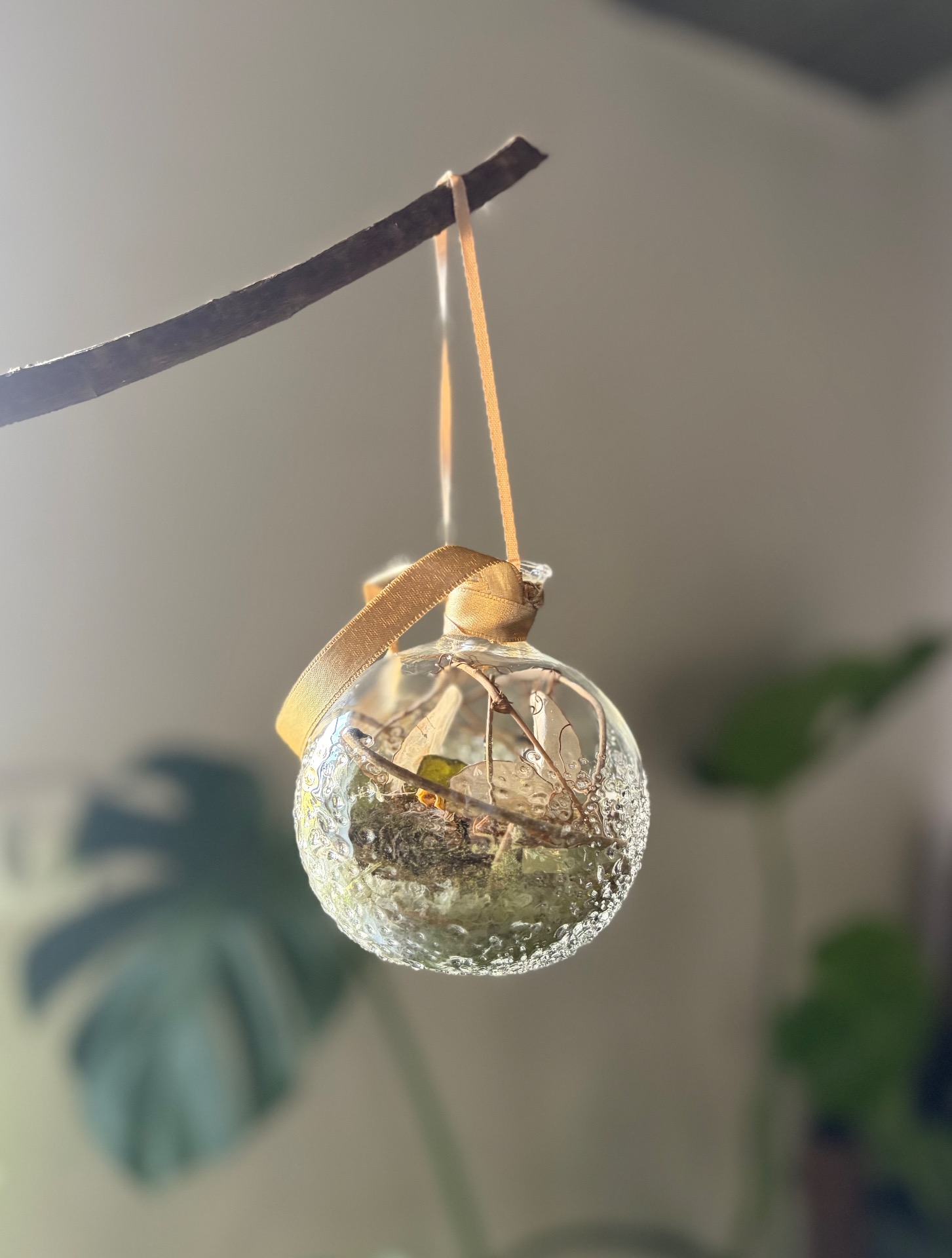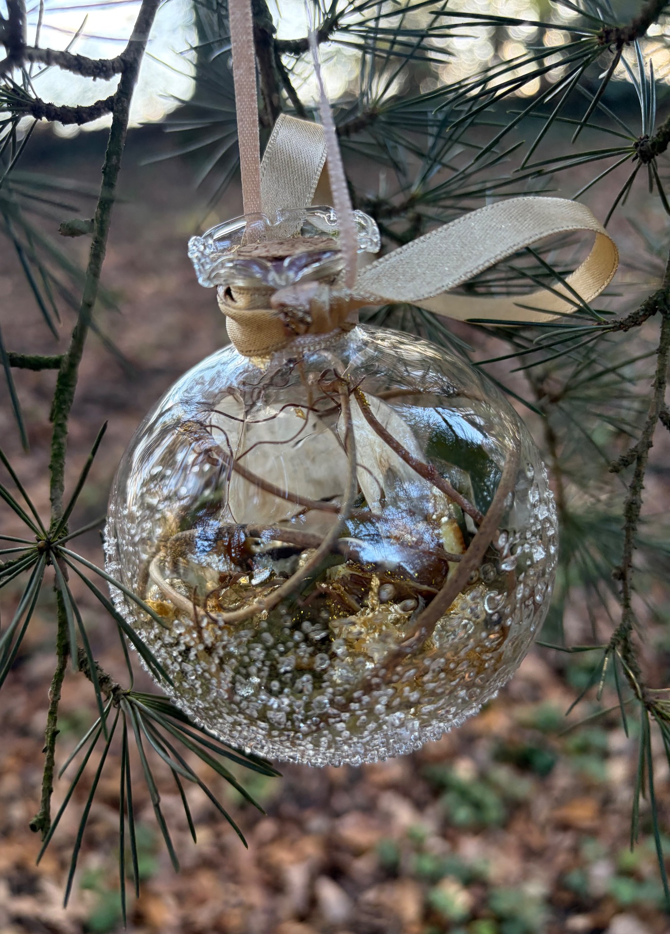 Chaque boule est préparée artisanalement, dans le respect du cycle saisonnier, et peut être activée par une intention silencieuse au moment de l'accrocher.