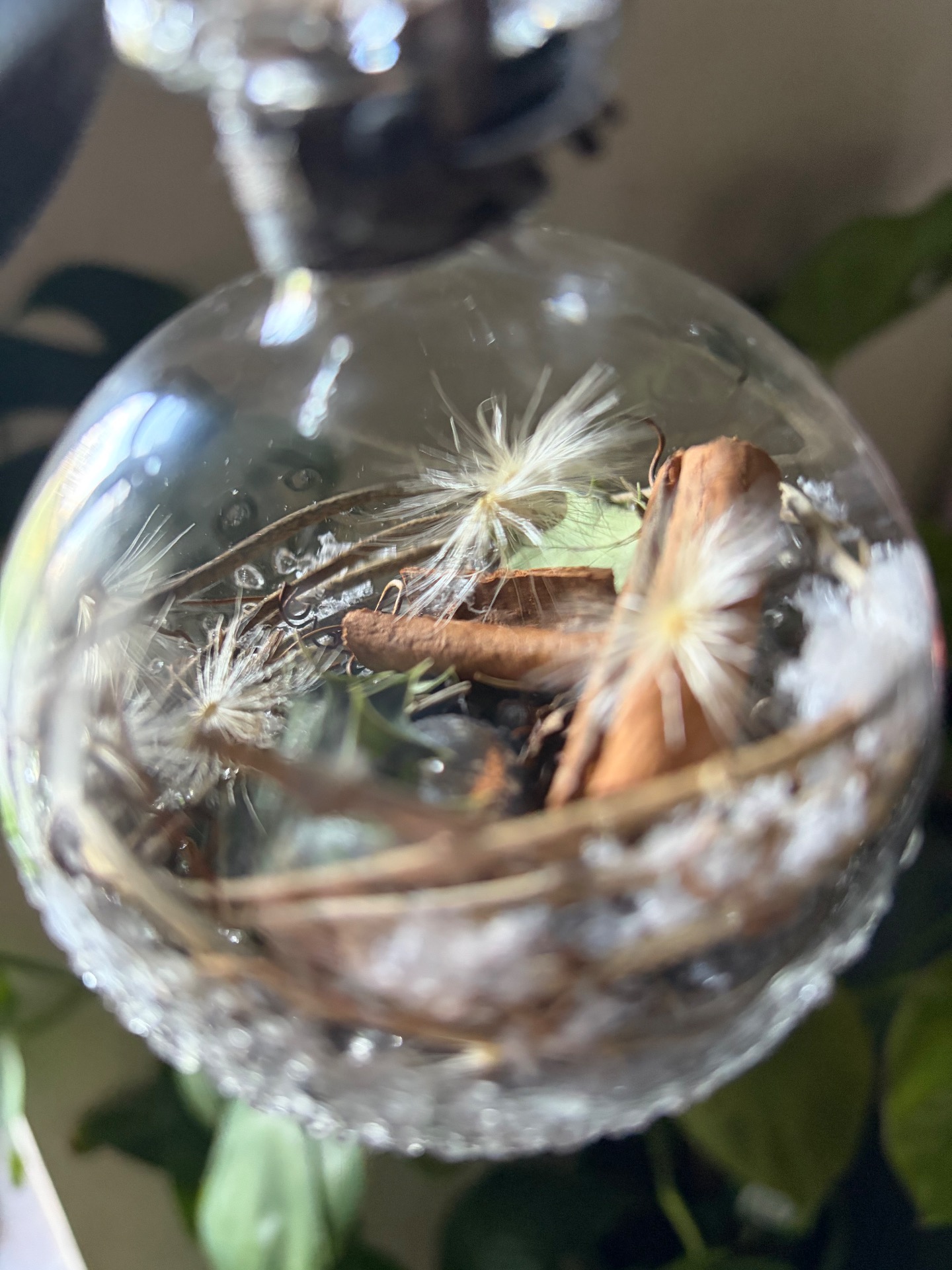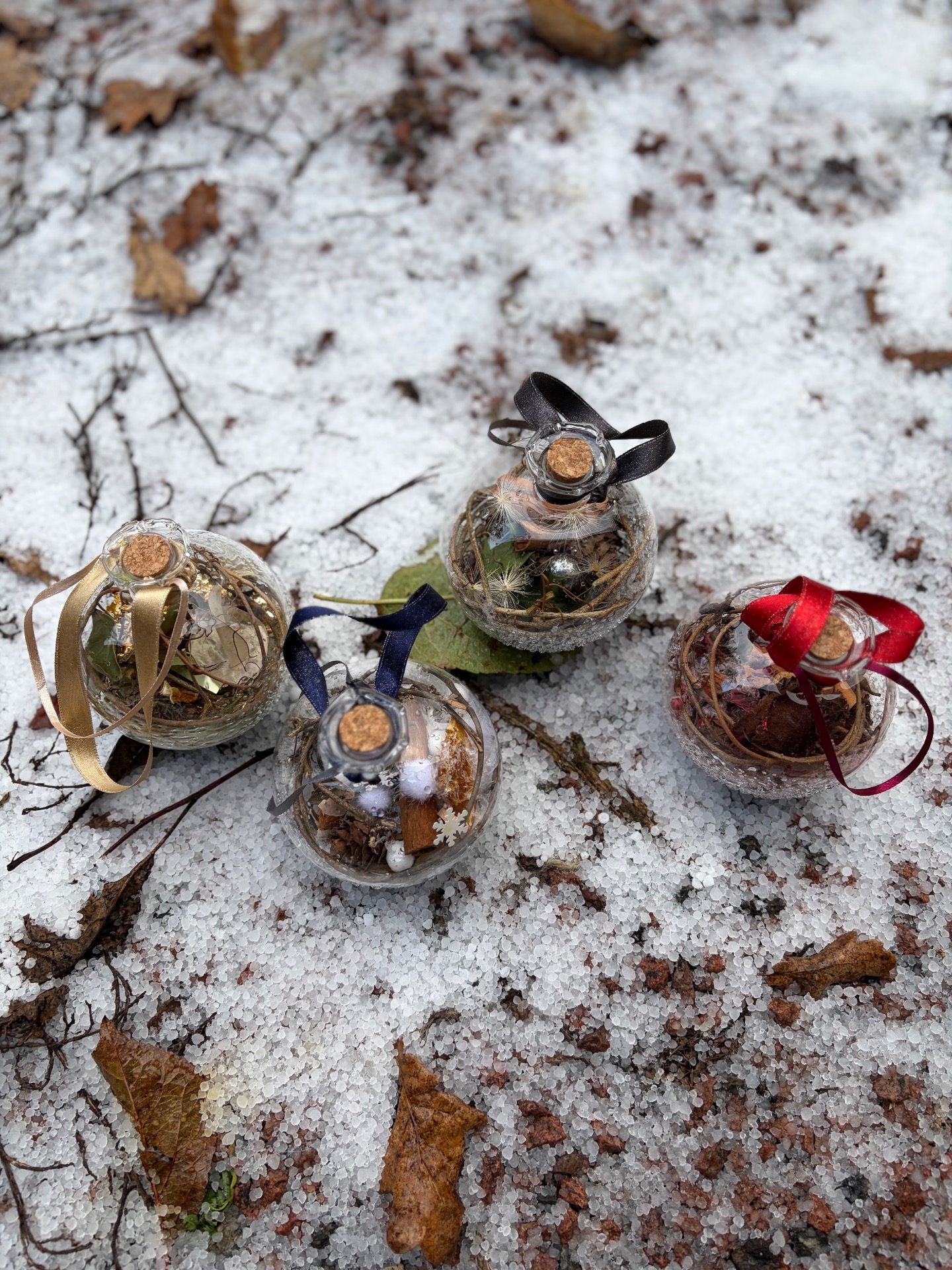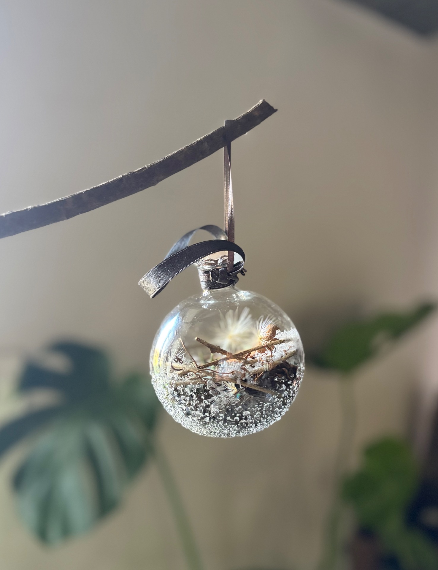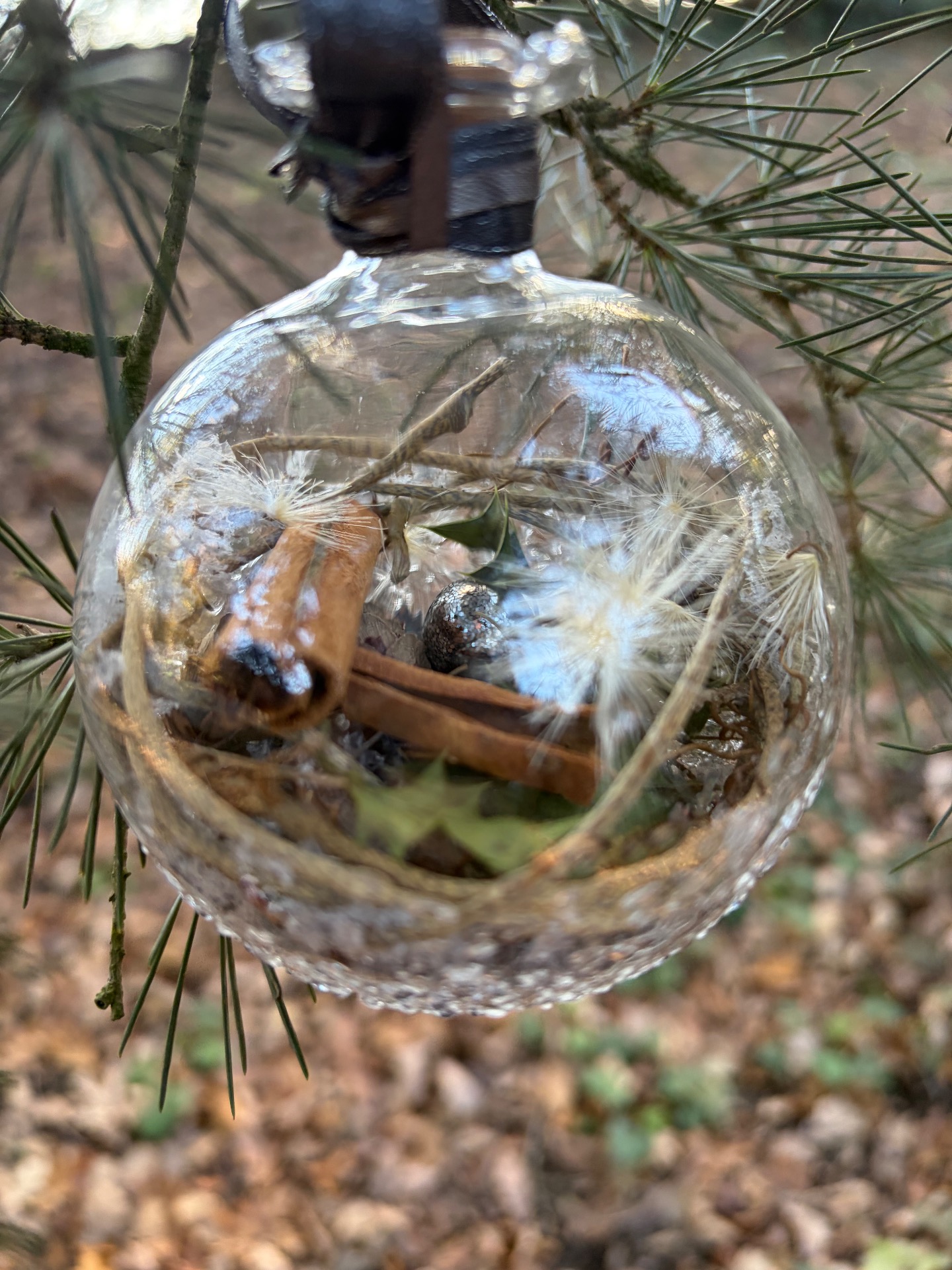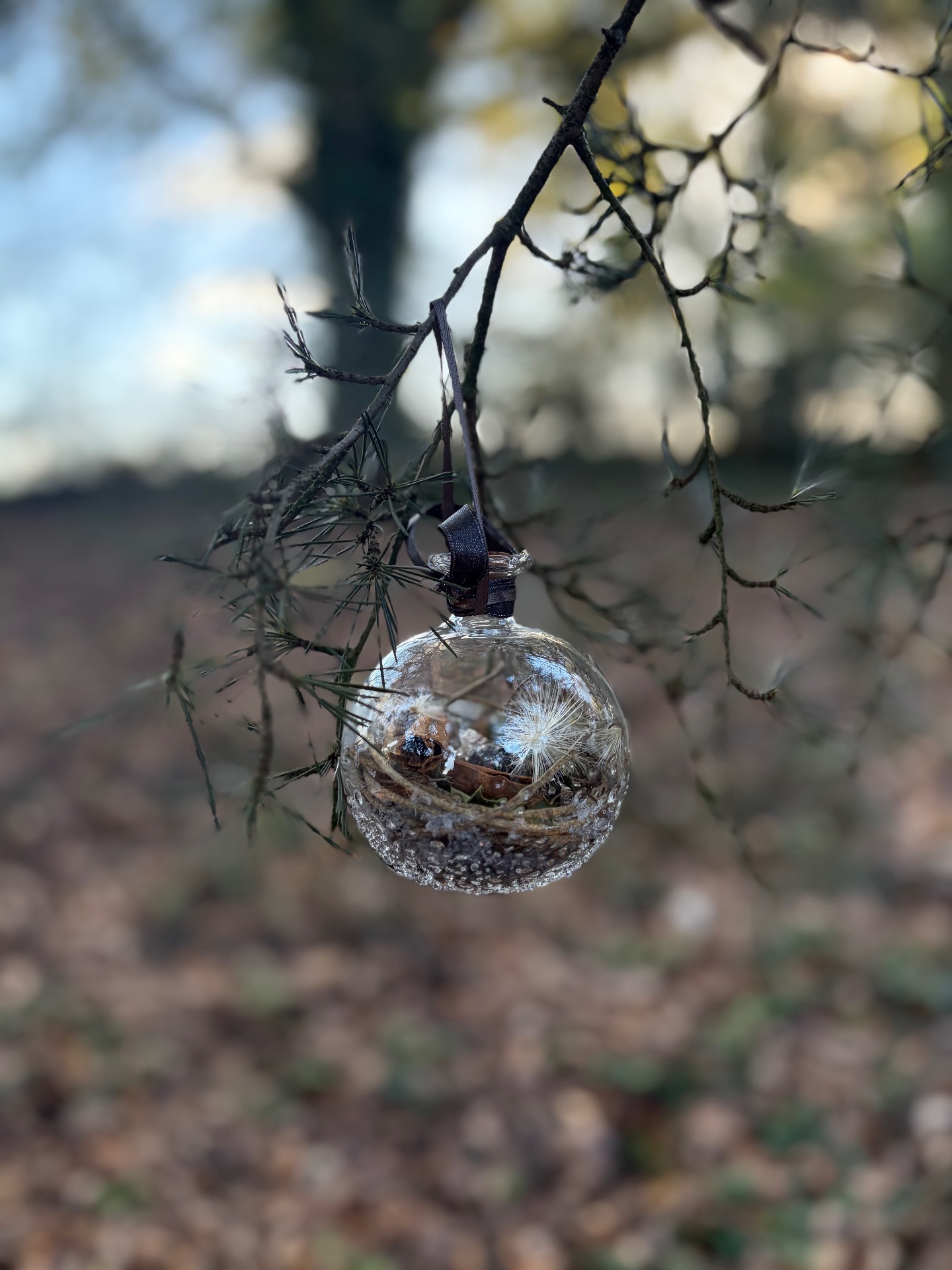 Chaque boule est préparée artisanalement, dans le respect du cycle saisonnier, et peut être activée par une intention silencieuse au moment de l’accrocher.