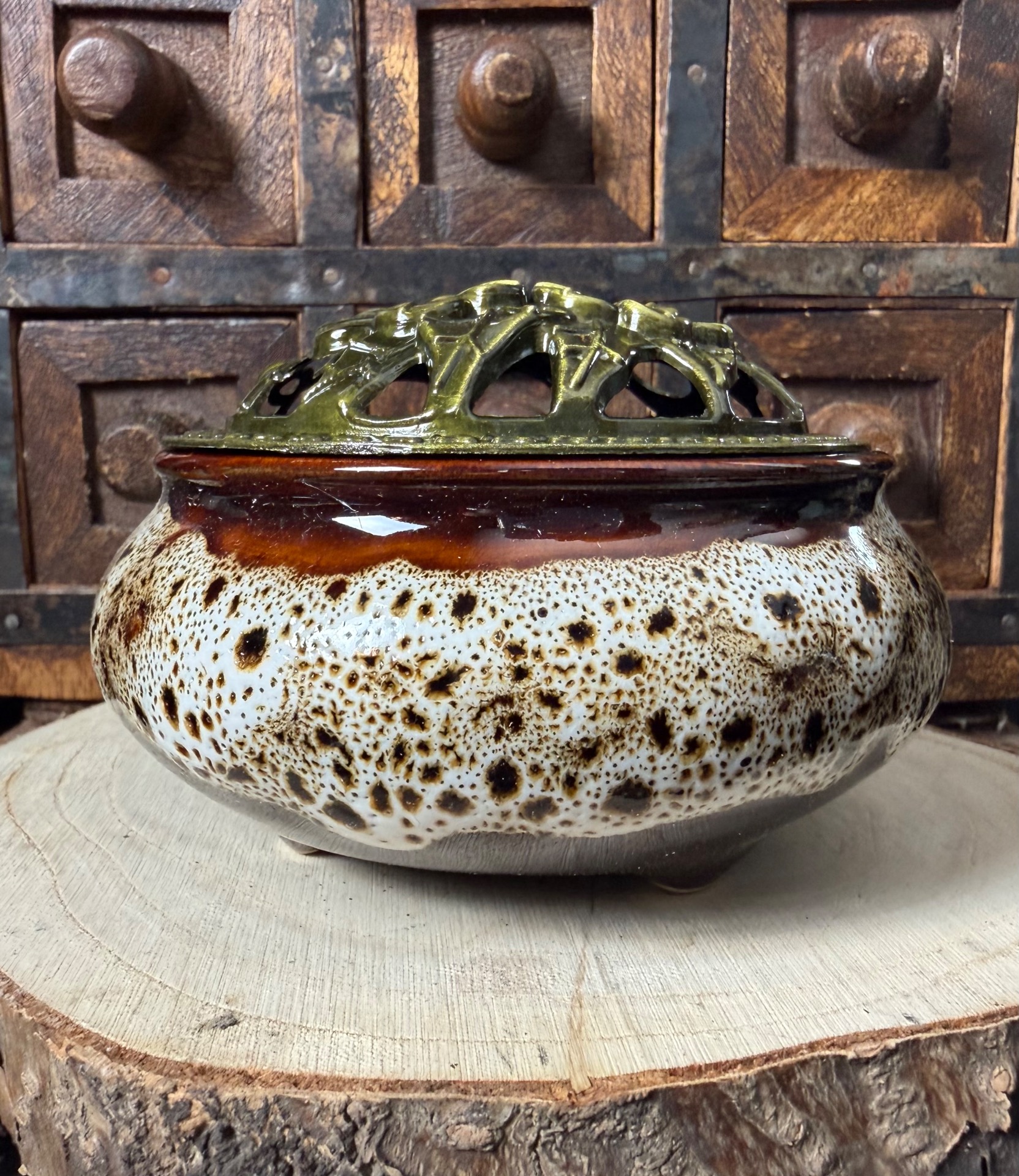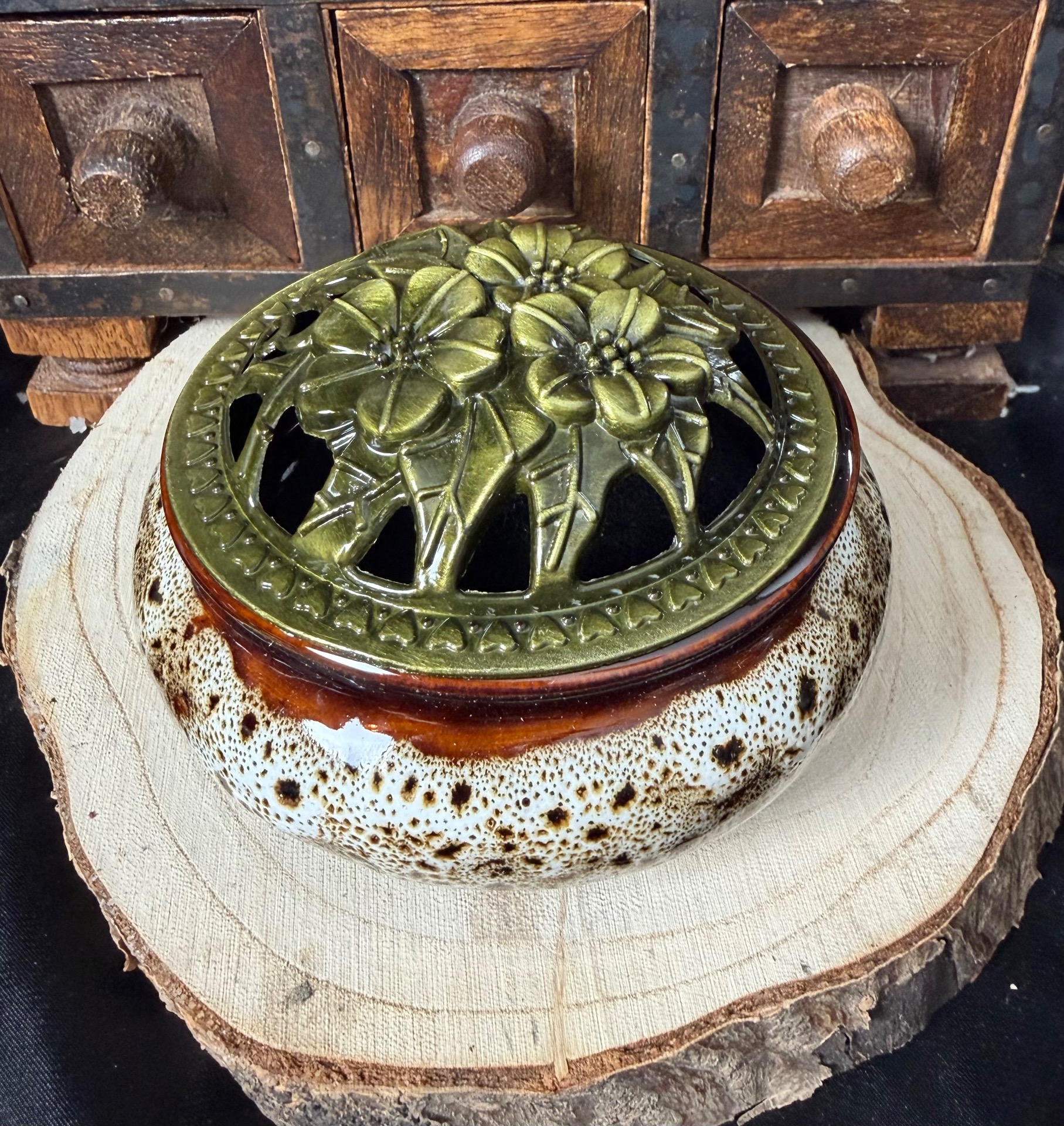 Brûle Encens en Céramique Marron - Blanc