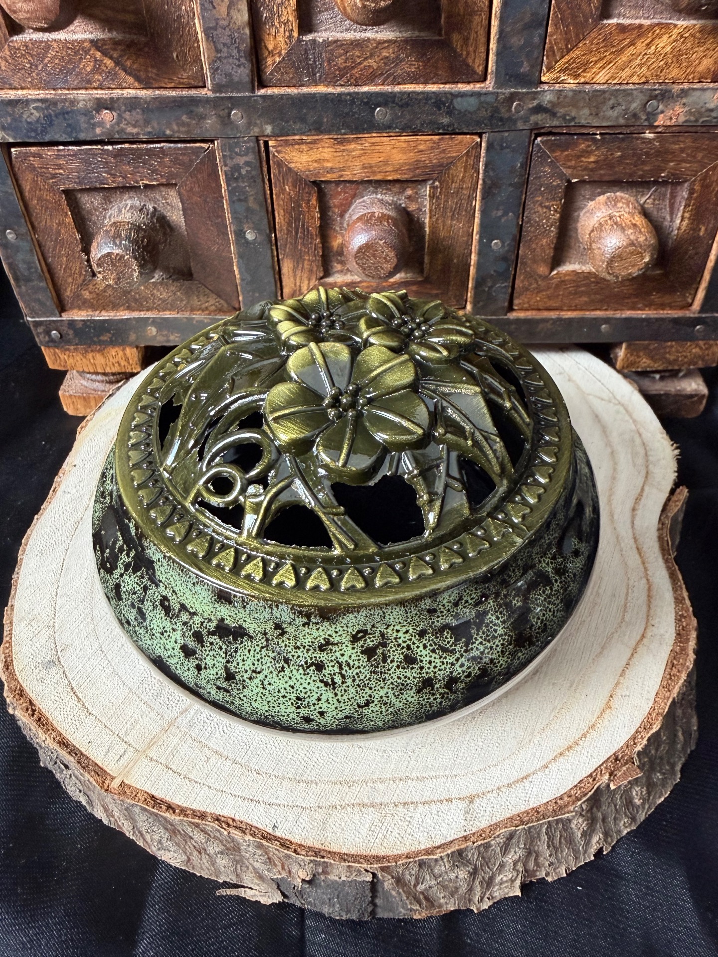 Brûle Encens en Céramique Noir - Vert