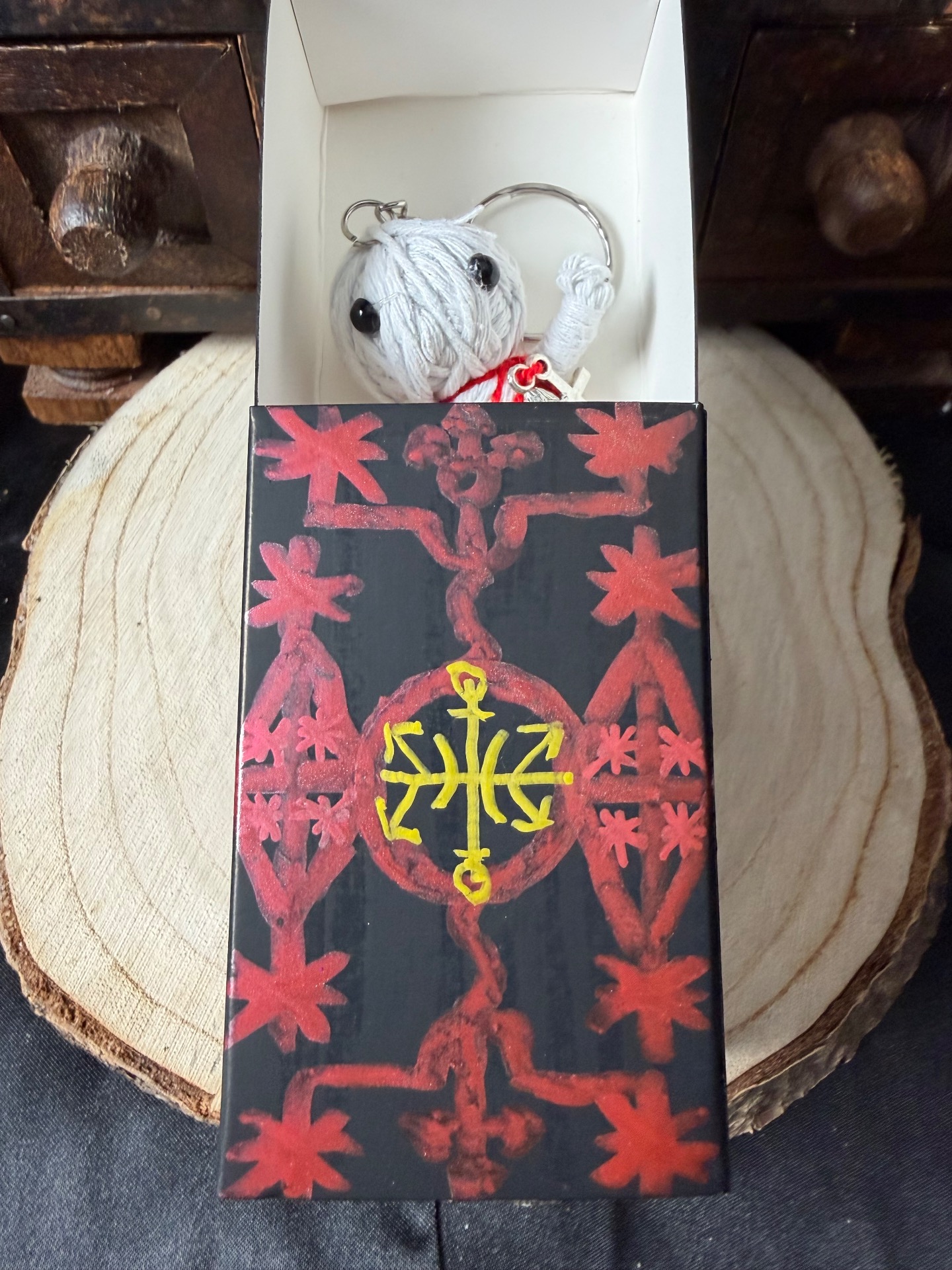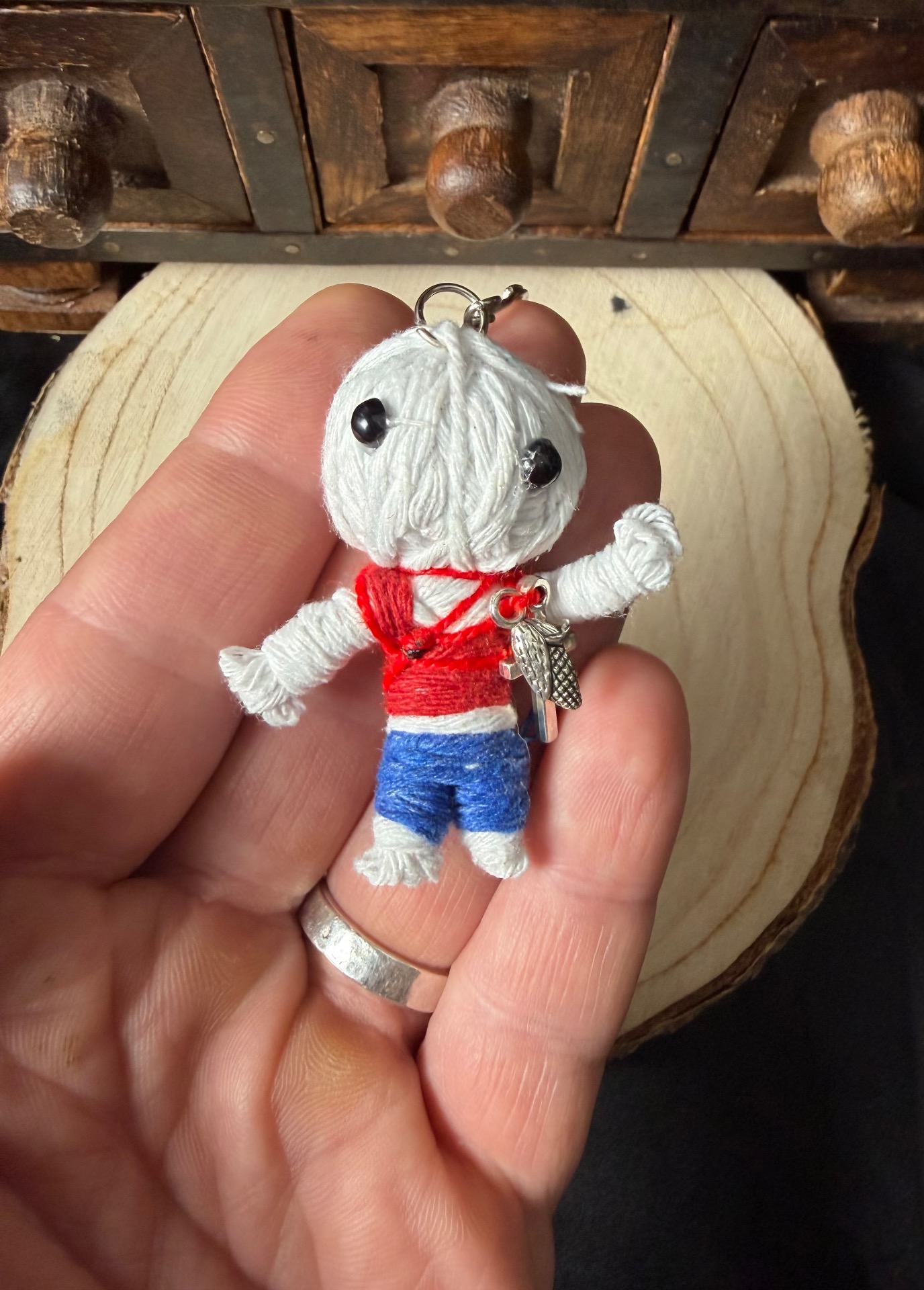 • Une poupée spirite (porte-clés) ornée de breloques choisies avec soin.