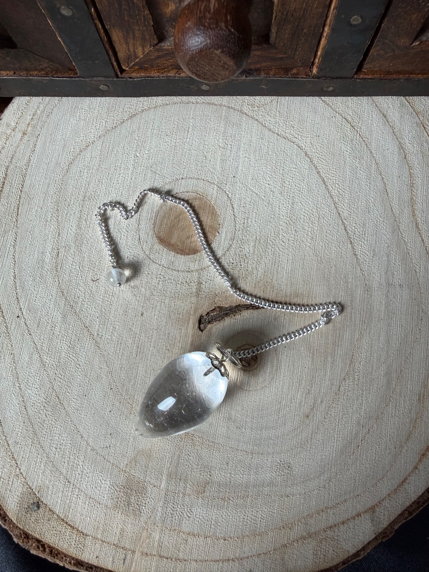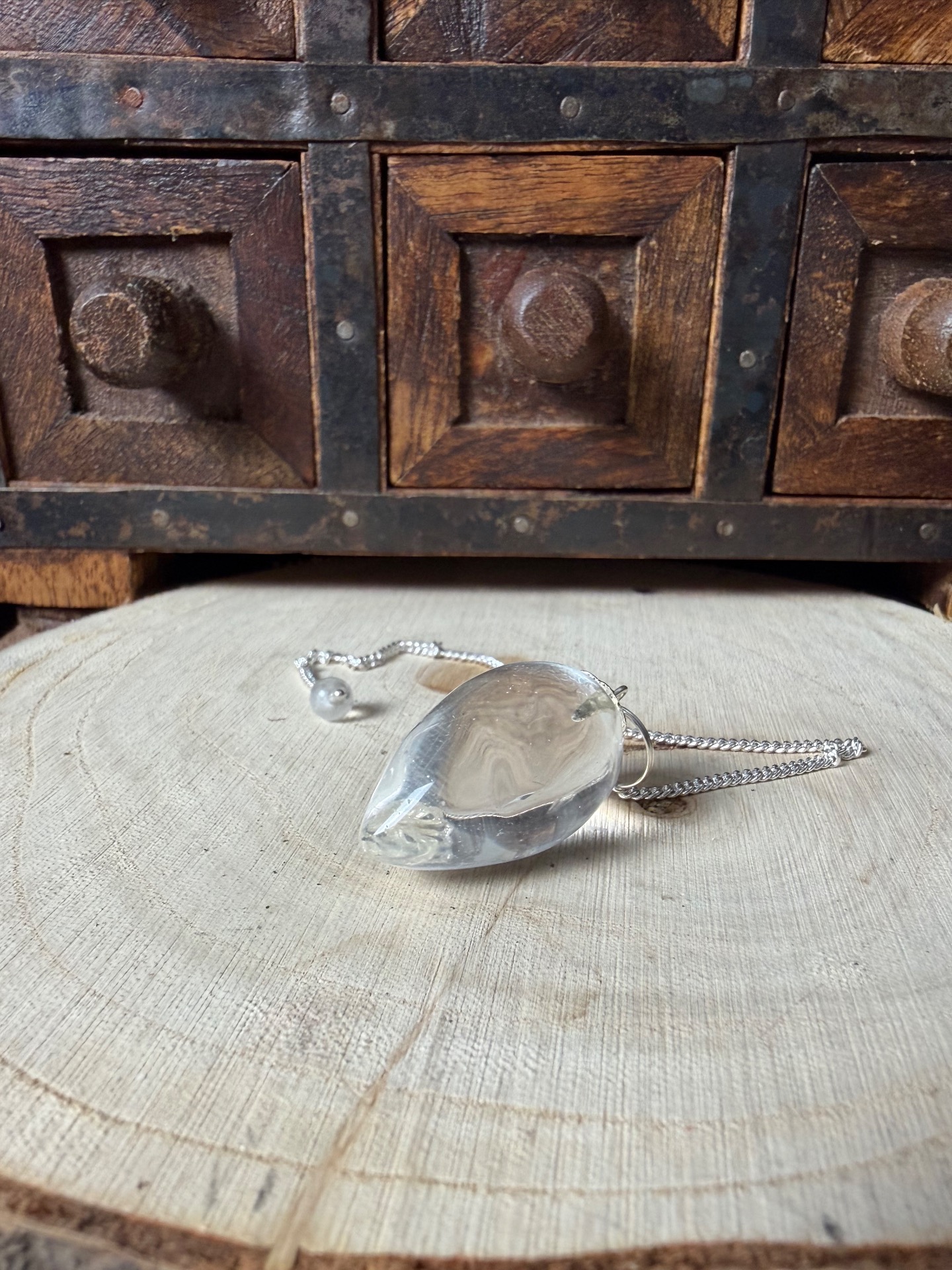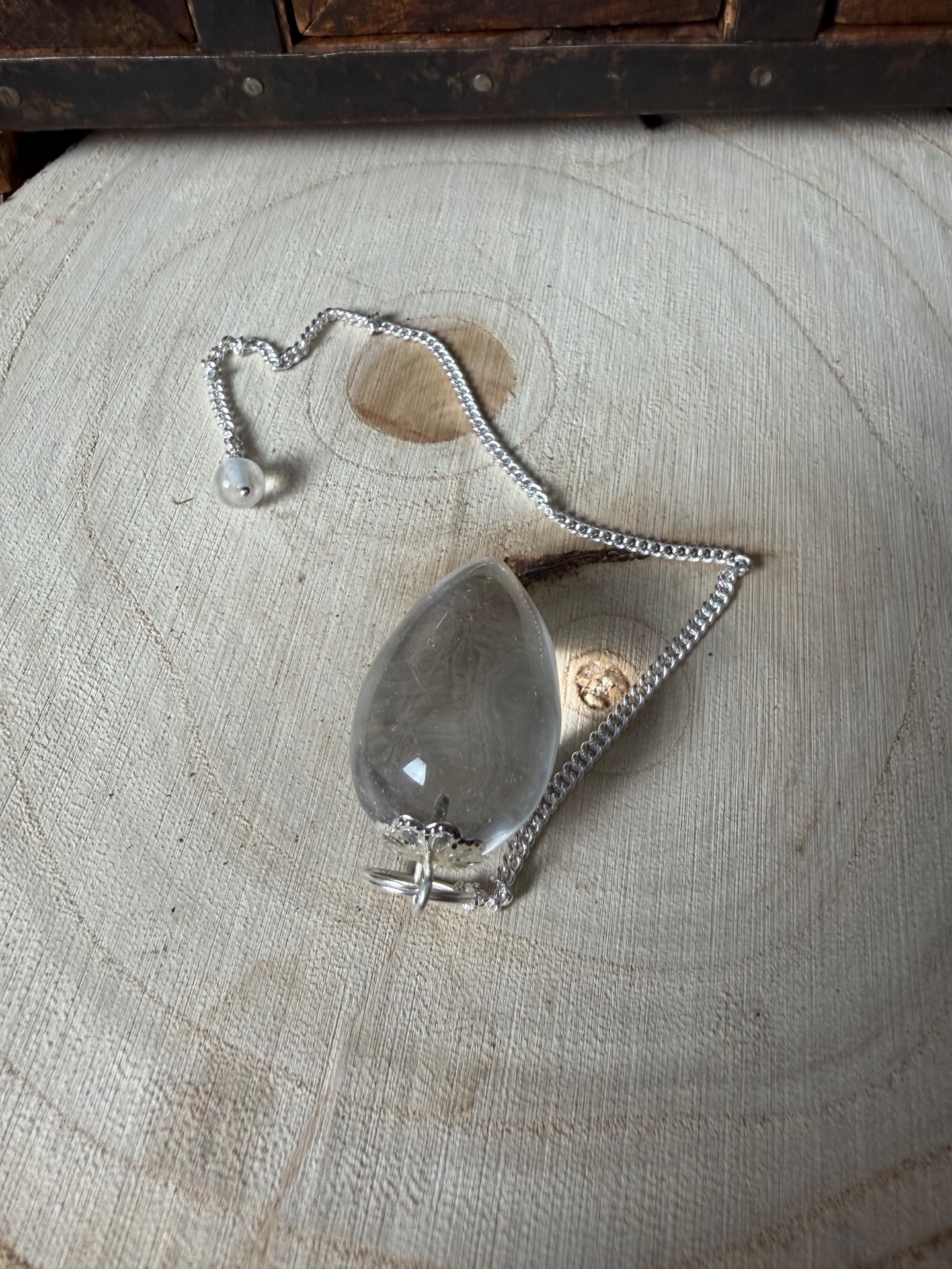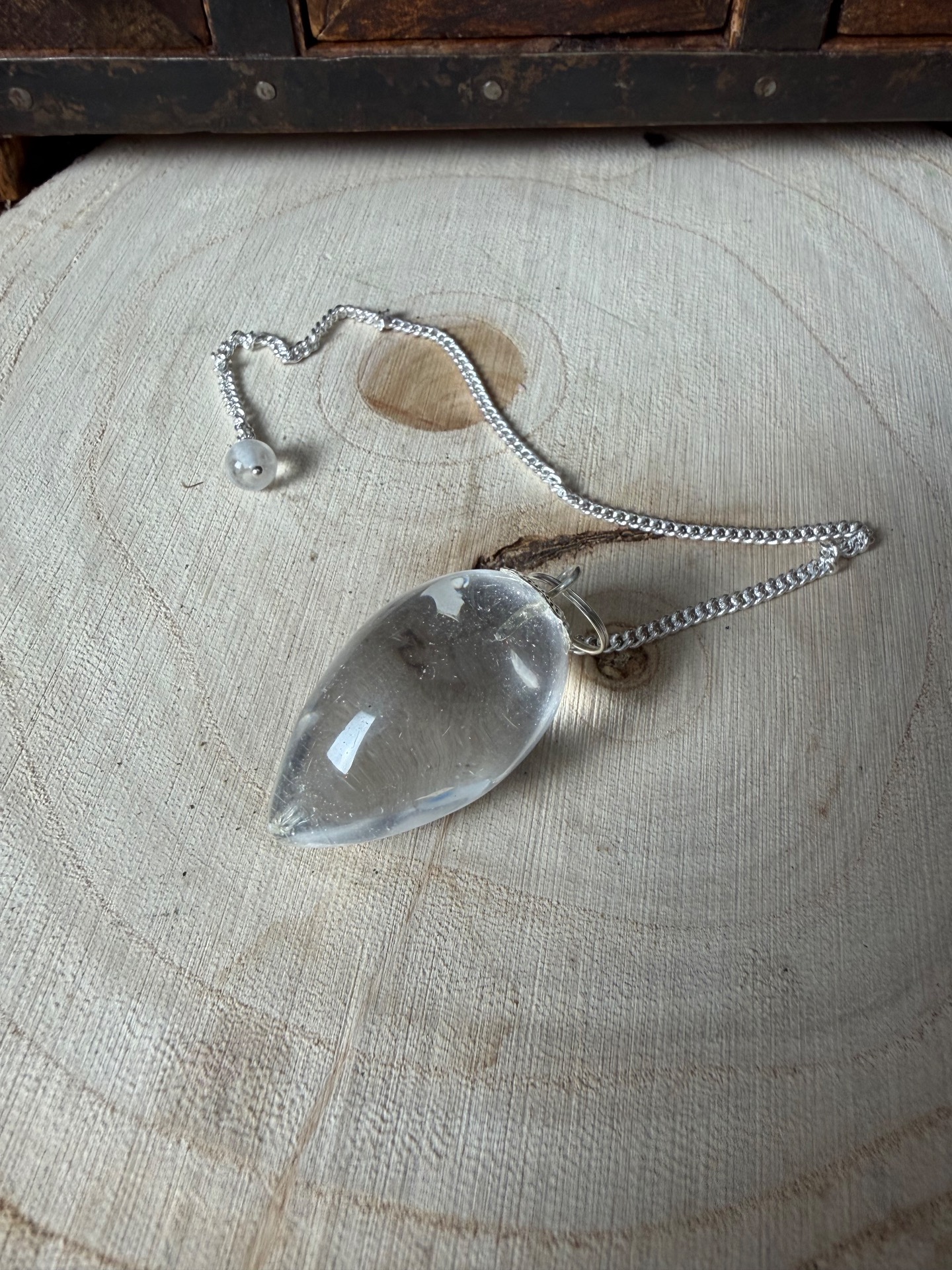 Magnifique Pendule en Cristal de Roche en forme de goutte.