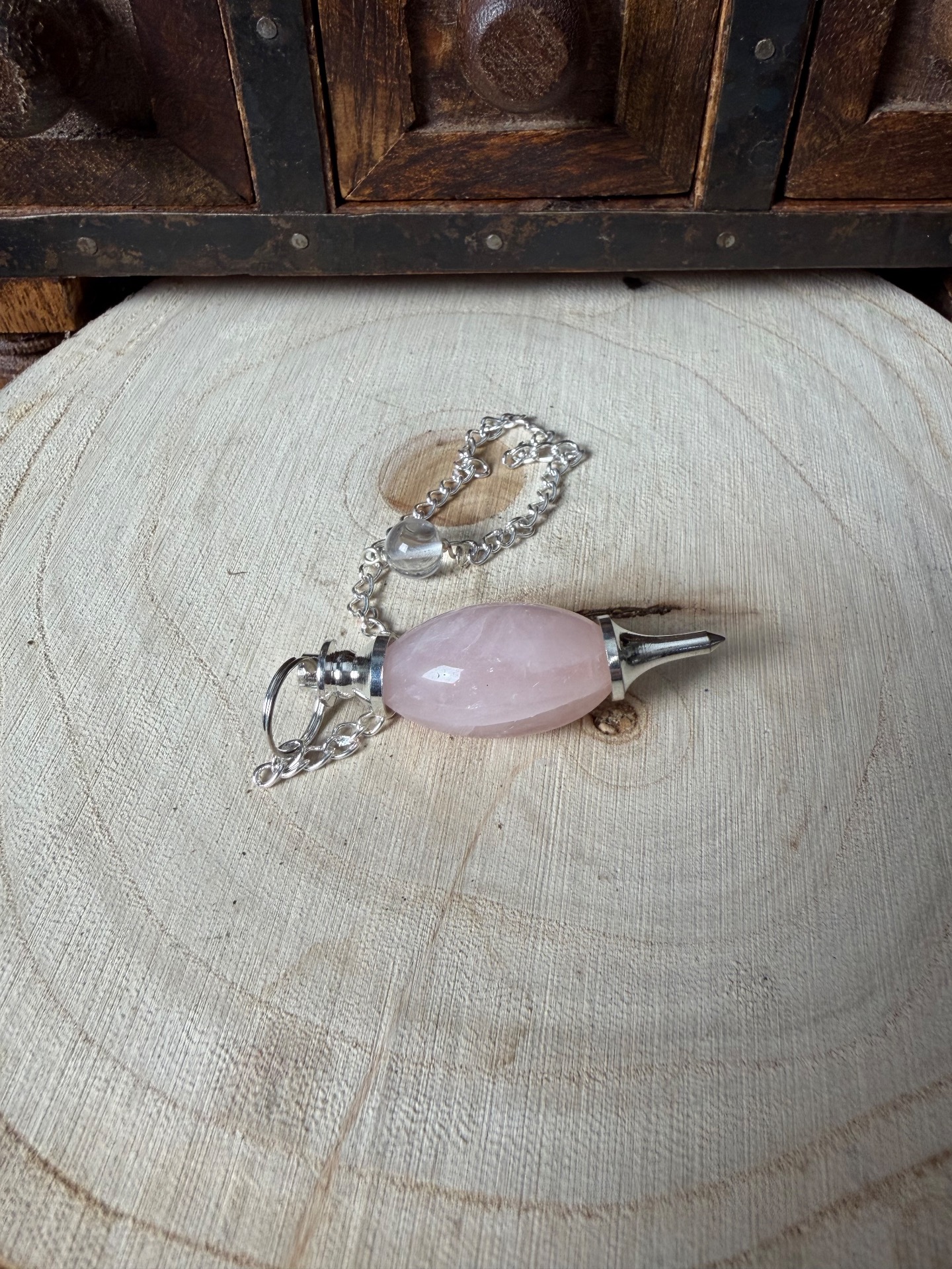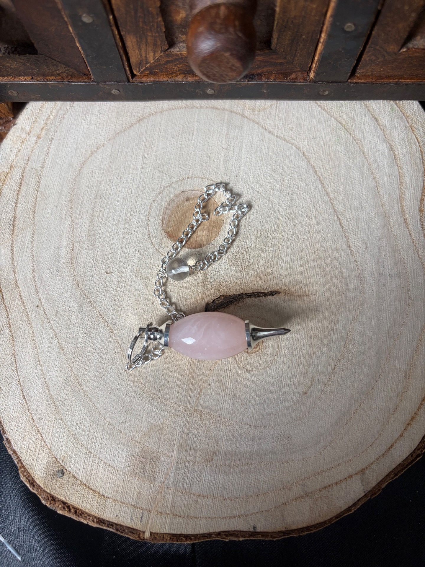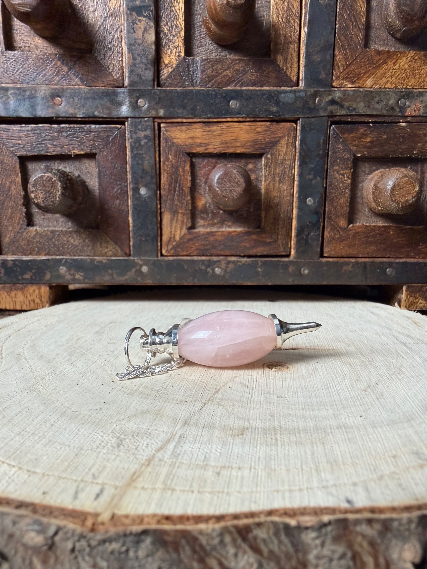 Magnifique Pendule en Quartz Rose forme Lingam.